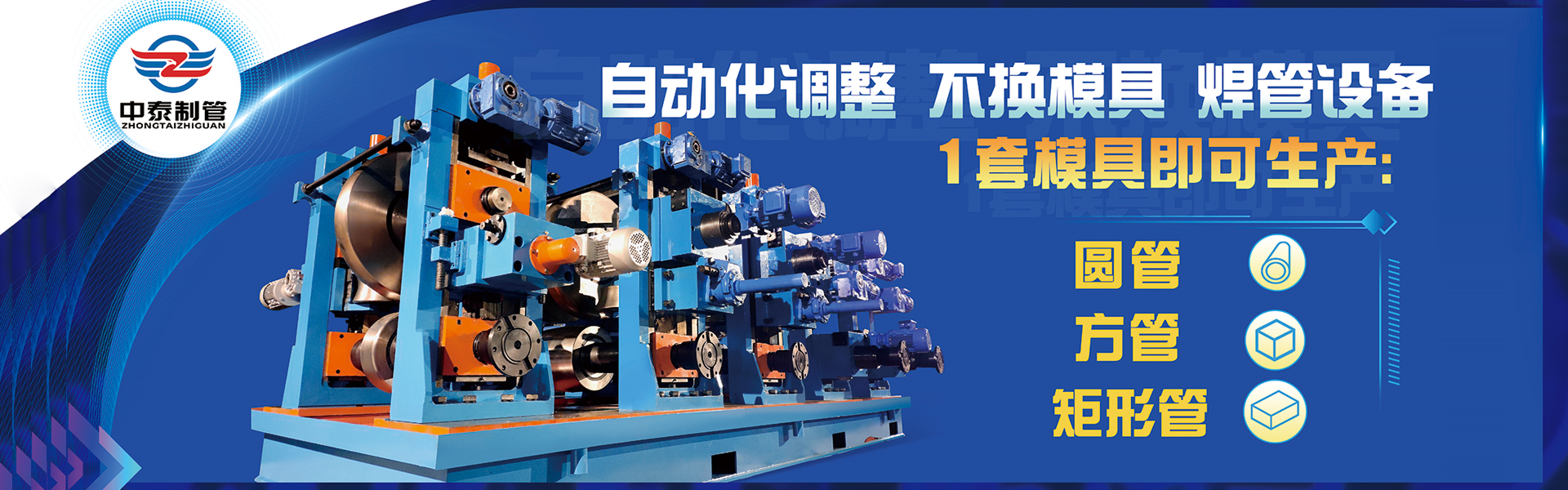 中泰主要產品包括各類高頻直縫焊管生產線、冷彎型鋼/異型管生產線、不銹鋼管生產線、縱剪生產線、各類生產線輔助設備及軋輥等。多年來中泰一直堅持引領行業技術創新,采用的圓變方、直接成方、圓管的不換模具工藝,獲得了多項發明和實用新型專利,應用產品獲得了行業內重要獎項。多種高質量、智能化產品滿足不同客戶的生產需求,與多家國內外大型企業建立了長期穩定合作關系。中泰將不斷通過技術創新、完善銷售服務體系,為客戶提供更加高端智能的冷彎、焊管設備解決方案和產品服務!